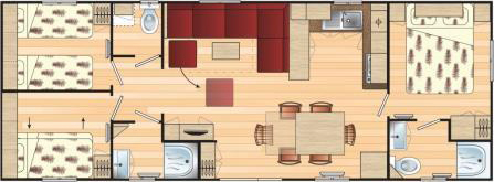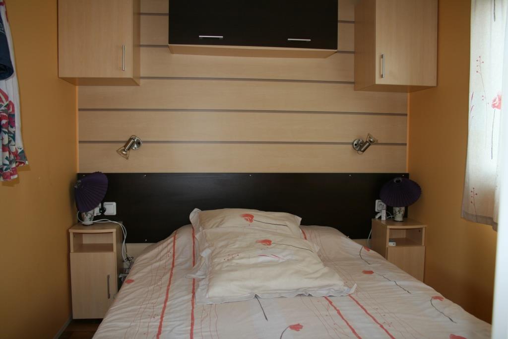 Voici ce qui s'appelle "la suite parentale" chez les fabricants de mobile-home. Il s'agit d'une chambre lit double avec une salle d'eau privative avec WC.