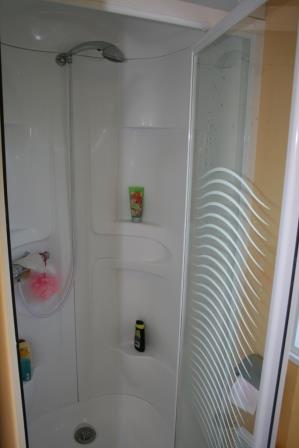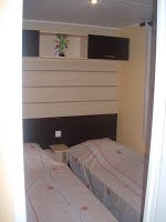 Voici ce qui s'appelle "la suite parentale" chez les fabricants de mobile-home. Il s'agit d'une chambre lit double avec une salle d'eau privative avec WC.